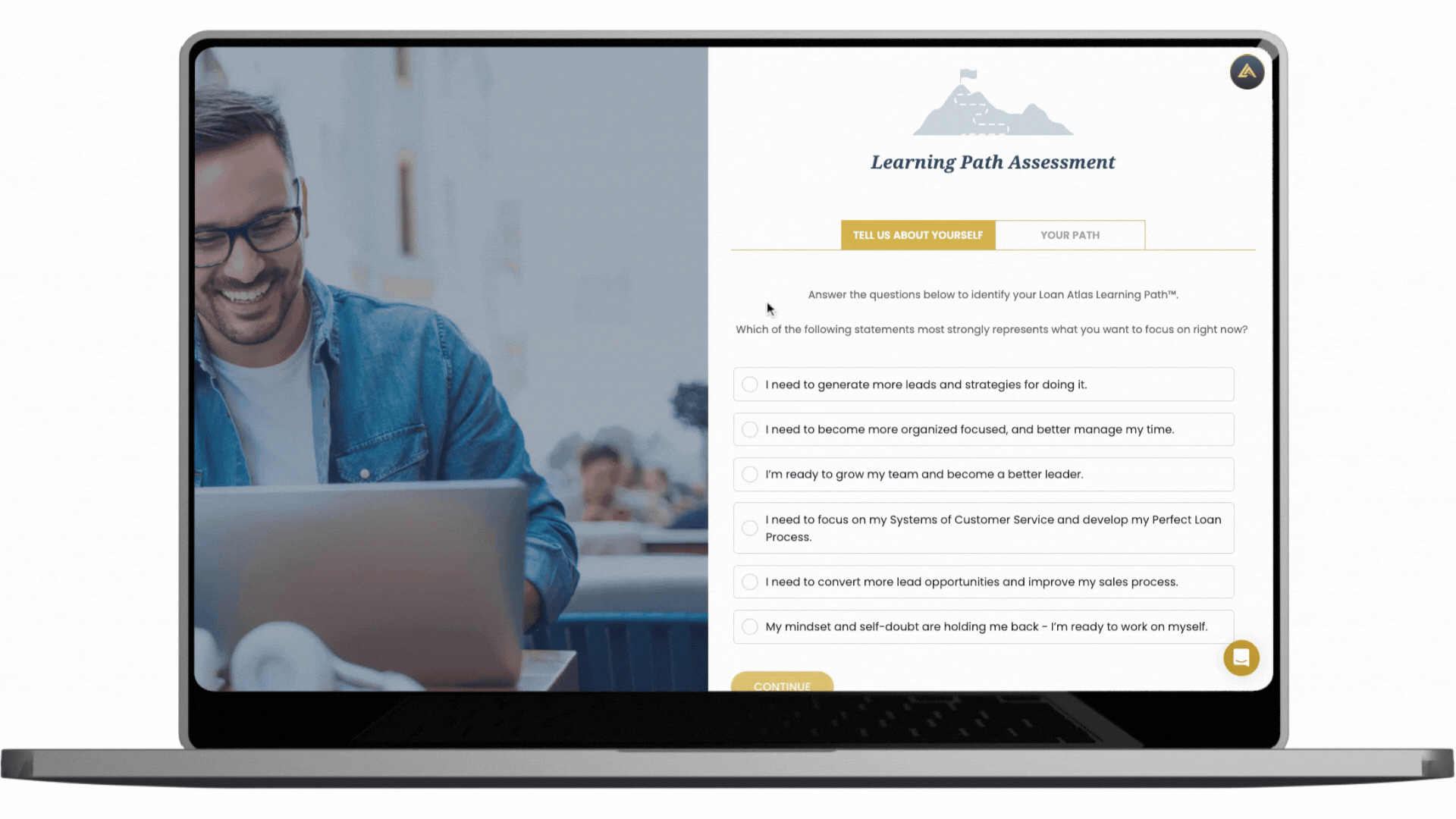 Define your professional and personal fulfillment. The Loan Atlas Learning Path is an initial assessment to unlock your customized journey. Drawing from your response, we handpick modules and lessons to streamline your path without the overwhelm.